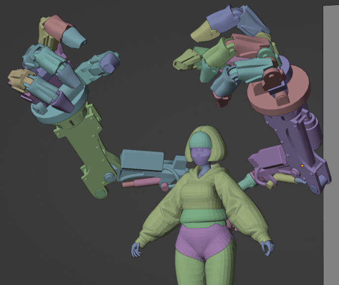 꽤 많이 썼다고 생각했지만, 이래봤자 폴리곤이 5만개 좀 넘는 수준. 이 중 로봇팔은 만개도 안된다. 기계류는 언제나 폴리곤을 들인 것에 비해 더 좋은 효과를 보여주는 것 같다.