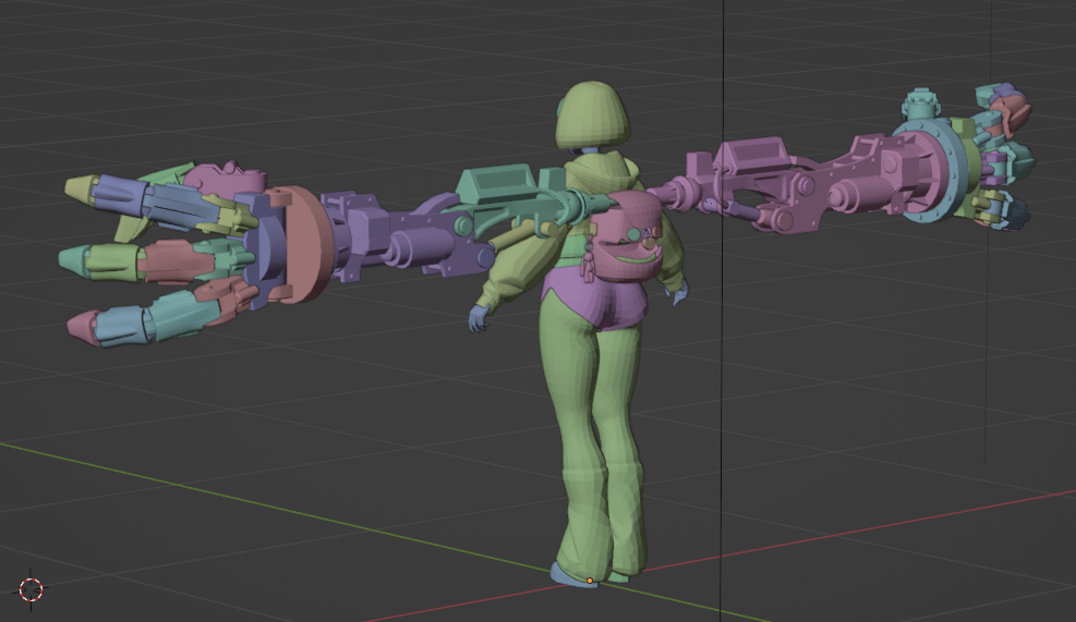 생긴 것에 비해 본 구조는 단순하다. 그냥 사람 팔과 같다. 하지만 어깨 관절부는 구형 움직임으로 디자인을 변경하는 편이 좋겠다. 움직임이는데 생각보다 제약이 크다.
