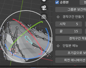 경직구간 설정. 충돌은 아니지만 충돌을 처리하기 위해 만들었다. 다른 기능과는 다르게 본 단위로 움직이므로 가장 마지막 단계에서 처리하는 편이 좋겠다. 원리는 단순한데, 시작과 끝의 보간을 없애 그래프를 평평하게 만든다. 완전히 자연스러운 애니메이션이라고 보기는 힘들지만, 설정된 값으로 최대한 쉽게 애니메이션을 만들 수 있다. 어려울 줄 알았는데, 의외로 쉽게 풀렸다. 오굳