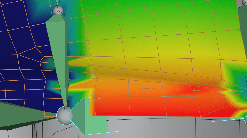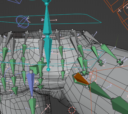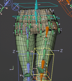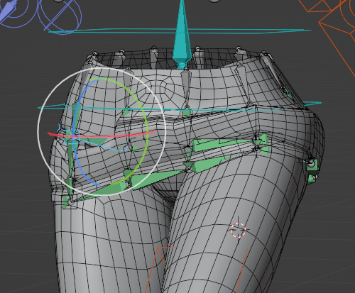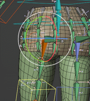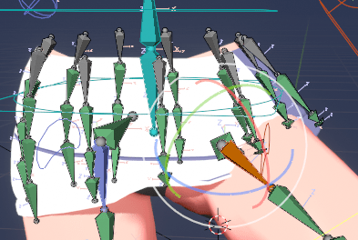 트위스트 본의 첫번째 본은 다리를 옆으로 뻗었을 때 분명 x축으로 90도가 돌아간다. 이는 앞으로 뻗었을 때와 옆으로 뻗었을 때의, 그리고 그 중간 보간과정에서 어느 축으로든 회전각의 합이 90도가 된다.라는 계산에서 시작한 작업이었지만, 실제로는 오일러 계산에 의해 선형적으로 보간되지 않는다.