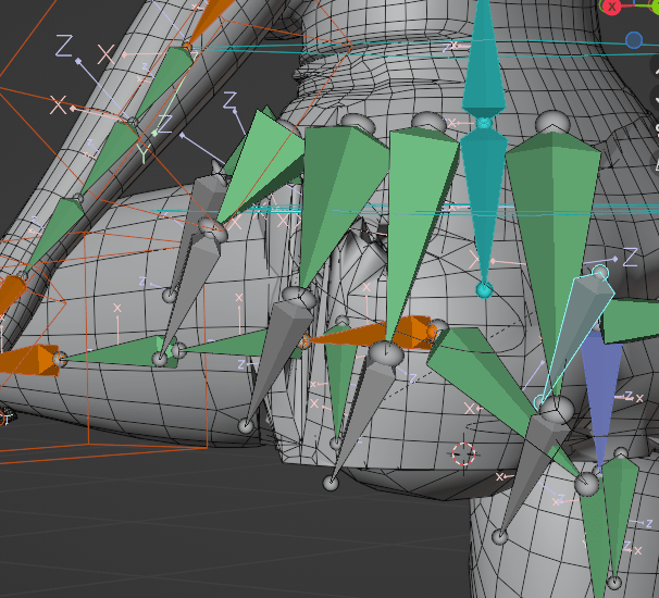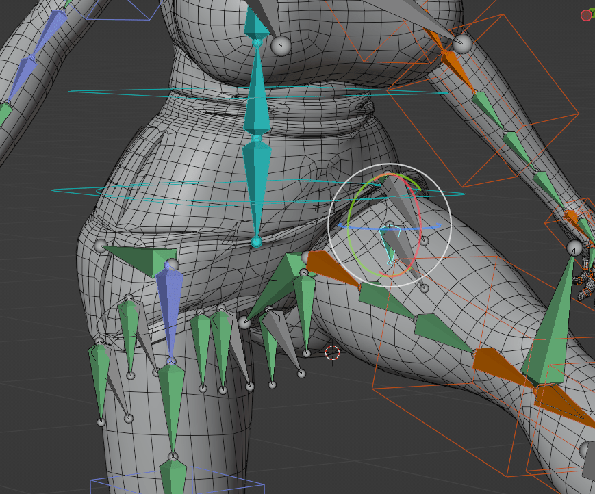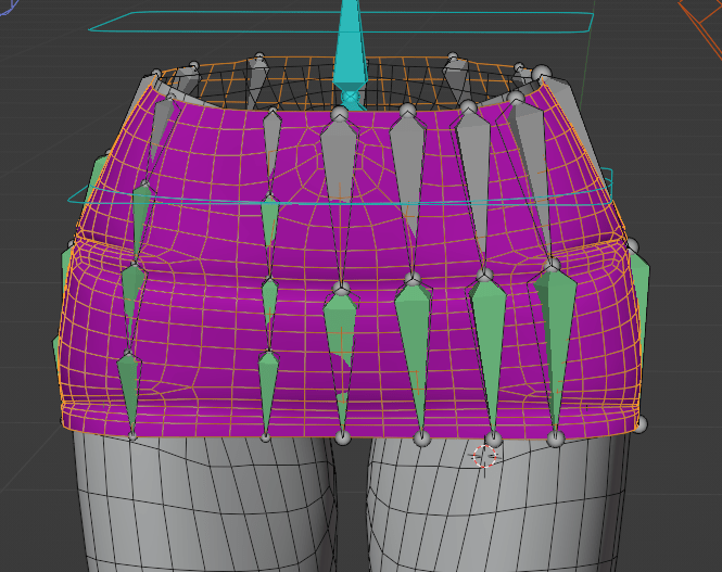닐리의 리깅포인트는 미니스커트다. 로폴이었다면 대충 다리에 붙였을 것 같은데, 표현이 정밀해질수록 할 일이 많아진다.