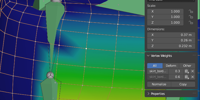 문제는 여기서 끝나지 않았다. 이번엔 본이 커튼처럼 뼈가 있는 부분외의 부분들에 볼륨이 나타나는 문제가 나타났다.
