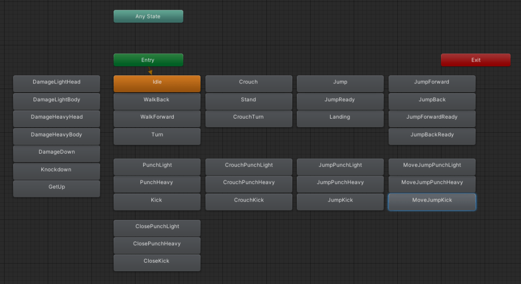 상대방 너머로 점프했을 때 Landing -> Idle -> Turn의 상태를 거치는 문제는 Play()의 호출시기 문제였다. 여러가지 이유로 지금까지는 Play()를 LateUpdate()에서 호출하고 있었는데, 이 때문에 애니메이션이 1프레임 느리게 나와서 정보가 제대로 되었음에도 불구하고 한 프레임이 튀는 현상이 발생했던 것이다.