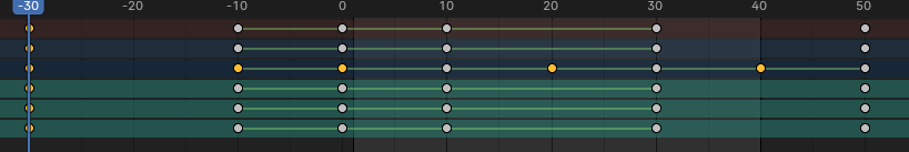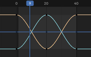 루프 애니메이션을 만들 땐 사이클링을 한다. 위의 그림으로 예를 들면 0-40프레임의 재생을 위해 클립 양쪽에 애니메이션을 보간해주는 키를 별도로 둔다. 블렌더의 fcurve에디터엔 사이클링 기능이 있지만, 이것은 유니티로 익스포트가 안된다.