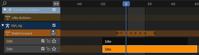 대기자세부터 만들어보자. 원래 지팡이를 오른손에 들었었으나, 공격모션이 예쁘게 나오지 않을 것 같아서 왼손으로 변경했다.Idle은 NLA에 첫트랙으로 등록해서 초기값으로 사용한다.