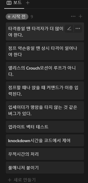 이로서 닐리의 기본 애니메이션 완료. 모션 테스트를 하며 작업보드에 또 한가득 이슈가 쌓였다.