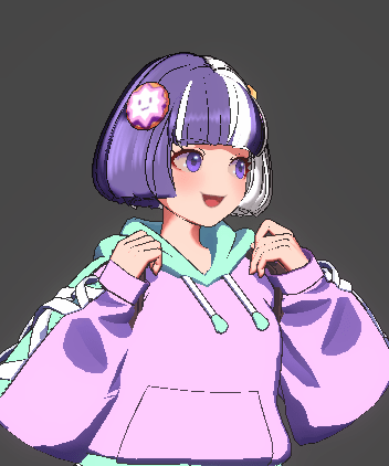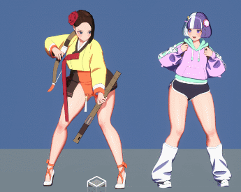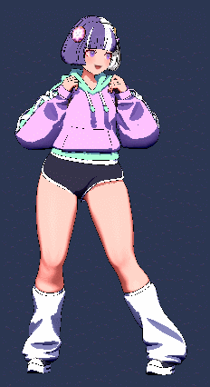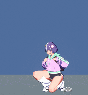 오로라의 대기자세는 고민이 많았다. 양손으로 가방끈을 잡고 있는 자세가 실루엣을 단순하게 만든다는 점 때문이었다. 하지만 가방이 주력인 캐릭터이기 때문에 이보다 어울리는 자세를 찾기가 힘들었고, 결국 초안대로 작업되었다. 애니메이션을 적용하니 예상보다 어색하지는 않다. 다행인 일이다.