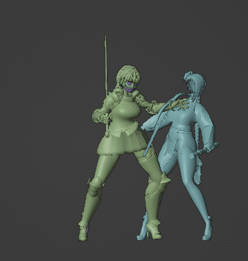 캐릭터 2명은 뷰포트에서는 꽤 느려서 풀 프레임으로 재생할 수가 없다. 때문에 솔리드 모드에서 전체 모션을 확인해야 한다. 오늘은 여기까지.