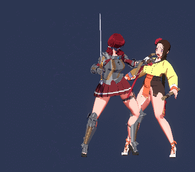 칼로 등을 찌르는 모션을 구현하기 위해서는 몇 가지 단계가 필요하다. 애초에 염두에 두긴 했으나 생각보다 더 귀찮은 작업인 것 같다. 먼저, 피격자가 등을 차인 후 앞으로 쓰러지는 모션은 분리해 제작되어야 한다. 이는 몇몇 기술이 머리를 쳐서 바닥에 처박힐 때 공용으로 사용될 것이다. (KOF의 료가 사용하는 수박깨기처럼) 그렇다면 필연적으로 일어나는 모션이 추가된다. 이를 DamageSlam, GetUpSlam으로 제작한다.