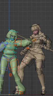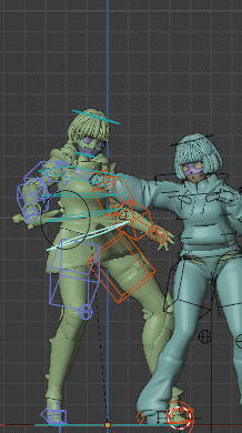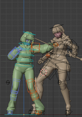 피격자의 시작 애니메이션도 완료. 애니메이션은 타격자 중심으로 만들어지기 때문에, 키가 다를 경우 피격자의 애니메이션은 조금씩 달라져야 한다.