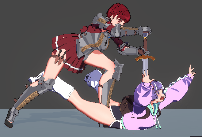 오로라가 오로라를 잡았을 때. 아이고 작다. 이런 문제 때문에 Caught모션을 완전히 공유해 쓸 수가 없다. 사실 키가 같더라도 세컨더리 애니메이션 문제도 있긴 하다.