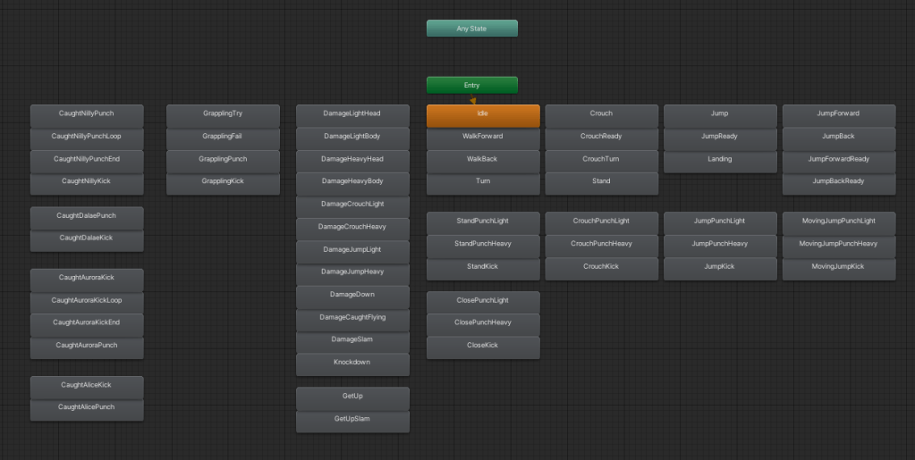 모션을 2개로 나눈 후의 세컨더리 애니메이션은 생각보다 일이 크다. 잡기 애니메이션은 사실 상당히 러프하게 만들었는데, 수량이 너무 많기 때문이다. 모든 걸 제쳐두고 돌아가게 하는 것이 중요하다.