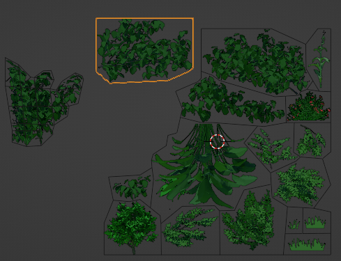 숲을 진행하며 얻은 결론. 식생을 공유해 사용하는 것은 어려운 일이다. 스테이지마다 색상이 다를 것이므로 그냥 그때그때 만드는 것이 생각할 것이 적고 더 다채롭다.