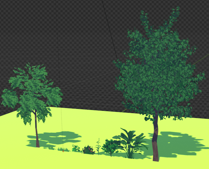대략적인 배치는 끝났다. 작은 풀들은 베이킹된 그림자를 토대로 색을 정해야 한다. 셰이더에 G채널이 필요할 것이다. 일단 구워보자.