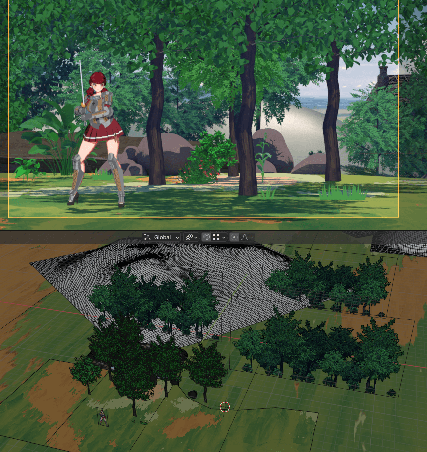 원경은 나무를 일일이 심기보단, 만들어진 이미지를 사용하는 편이 효율적일 것 같다. 이런 건 AI에게 맡기면 좋다.