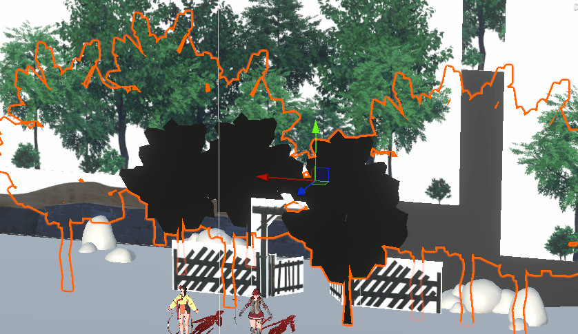 나무는 버텍스 컬러의 G채널을 통해 색을 양감을 준다. 이를 그림자를 통한 버텍스 컬러 베이킹으로 할 수 있을 줄 알았건만, 마음에 드는 결과물이 나오지 않아 결국은 수동으로 처리해 주었다.