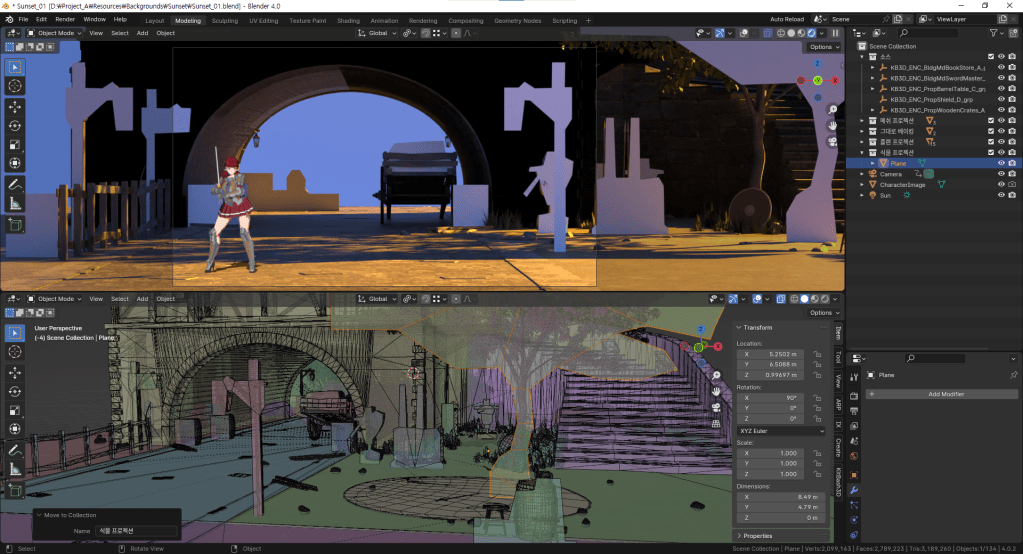 프로젝션 준비를 위한 모델링 작업. 그래도 2번 작업을 거친 후라 한결 수월하게 진행 중