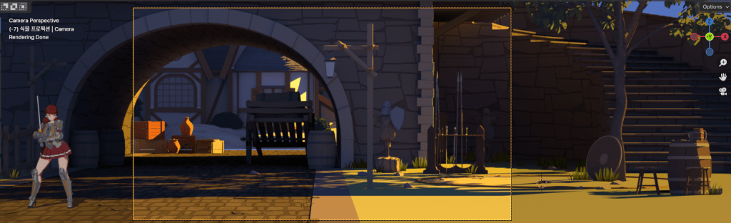 총 폴리곤은 19630개. 캐릭터 하나의 1/5도 안된다. 뷰가 고정되면 여러 모로 잇점이 많다.