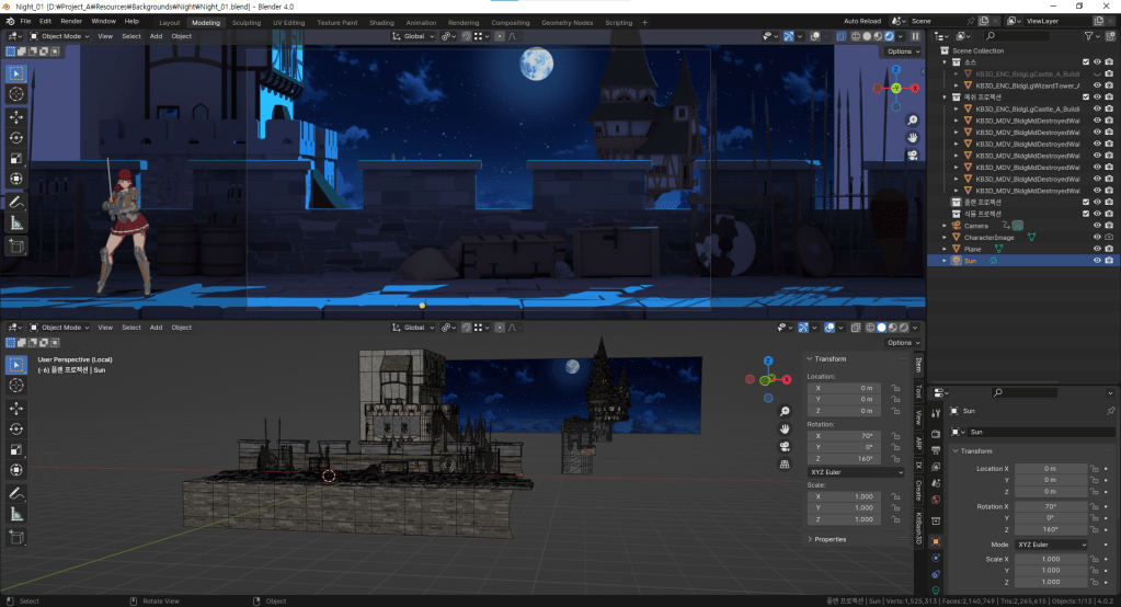 오… 나쁘지 않은데 달이 너무 크다. 애초에 웹툰용 소스라 하늘이 넓게 표시되지는 않기 때문이다. 일단 밑져야 본전이니 AI를 돌려보자.
