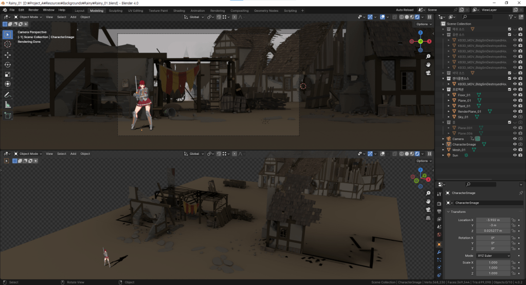 - 이 항목은 바닥으로 갈 수록 하얀 포그를 추가하고, 캐릭터일 경우 색채도를 낮춘다. 적용했을 때 결과물이 별로라면 필요없을 수도 있다.