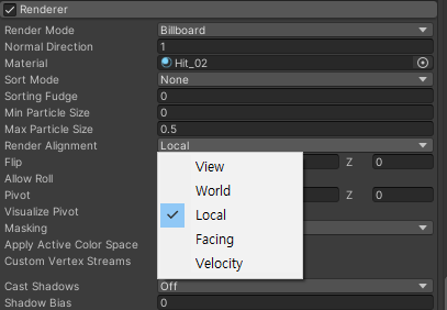 파티클을 뉘이고 싶다면 렌더정렬을 Local로 해주면 된다.