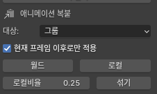 대기자세에서 앞머리를 휘날릴 때 순차키를 주려고 시도했는데, 본 갯수가 많다보니 1프레임 단위가 너무 크다. 때문에 더 세분화할 수 있는 기능이 필요했다. 결국은 또 애드온을 수정.