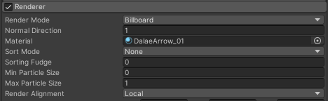 뜻밖에 매우 어려웠던 대각선 화살. 이게 왜 어려웠냐면 스케일때문이다. 현재는 파티클을 생성시킨 후, 세로스케일을 줄여서 사용하고 있는데, 이것이 월드 기준으로 계산된다. 따라서 이것을 로컬기준으로 변경하려면 몇가지 설정이 필요하다. 일단 렌더러 설정에서 렌더정렬을 Local로 바꿔주고