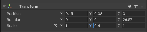 그리고 스케일을 줄인 후, 로테이션 또한 하이라키에서 제어해야 한다.