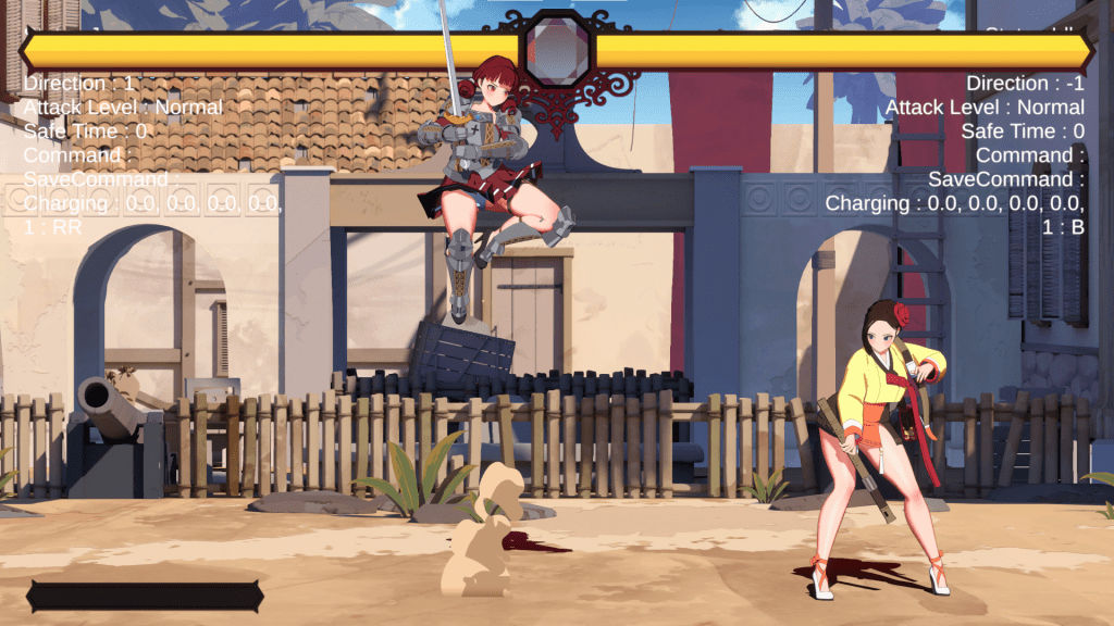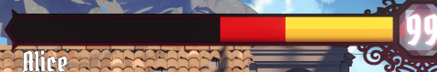 HP게이지는 3단계. 붉은 색은 콤보가 끊기지 않았을 때의 데미지 누적량이다. 데미지 확정의 중간단계이며 콤보가 끊기면 사라진다.