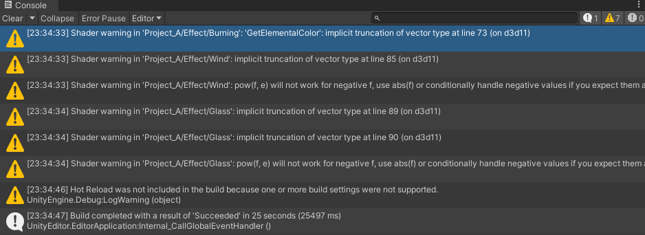 빌드하다가 셰이더 경고가 한가득 떴다. 대체로 float3와 float4를 잘못쓴 경우이다. 요새 빌드를 게을리 했더니 이런 선물을 주었다.