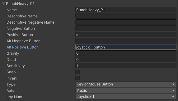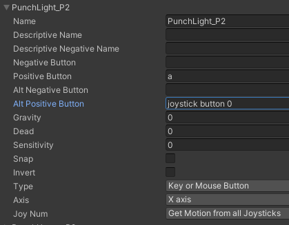 방향키는 GetAxis()를 사용하고, 버튼은 조이스틱 버튼을 사용해야 한다. 일단 입력체계를 버튼이 아니라 Axis형태로 바꿔보자