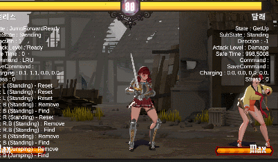 어제는 지인의 사무실에서 대략적으로 완성된 클라이언트를 가지고 대전테스트를 했다. 역시 혼자할 때와는 다르다! 생각보다 많은 부분에서 문제가 일어났는데, 특히 방어 후 반격을 할 때 조작감이 상당히 좋지 않았다. 게다가 장풍은 왜 이리 안나가는지! 대시가 들어가 템포는 빨라졌는데, 맞고 누워있을 때의 시간은 그대로라 이것도 꽤 길게 느껴졌다. 다행인 점은 버그가 생각보다 적었다는 점이다. 대부분 시스템적 보완사항이다.