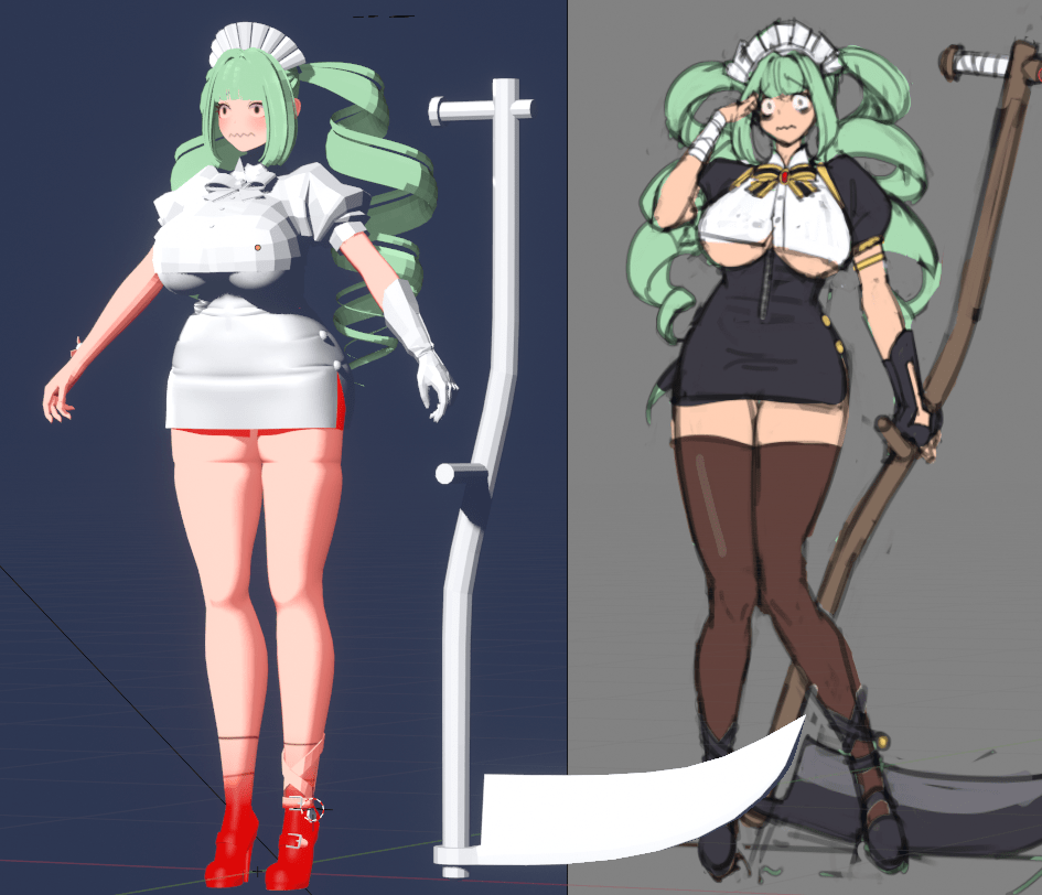 1차 모델링 완료. 옷의 두께는 리깅을 한 후에 마무리해야 한다.