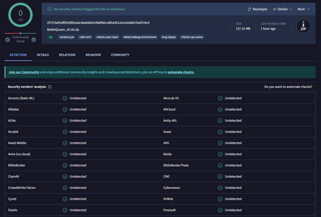 ▲ 품질 보증서(https://www.virustotal.com/)