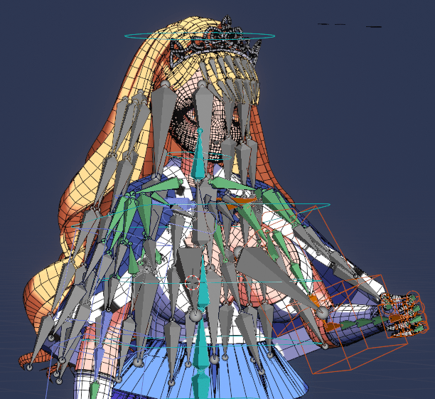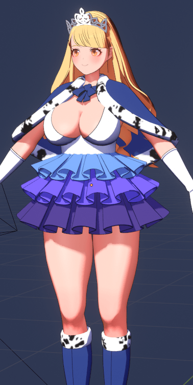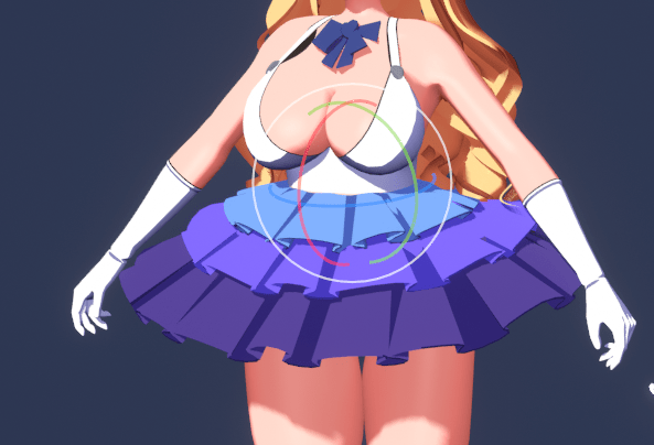 치마의 프릴은 다이나믹 본의 도움을 받을 예정이었는데, 차질이 생겼다. 다이나믹본은 마디가 없는 단일본에 대해선 처리를 하지 않는다. 이를 해결하기 위해선 offset을 두어 가상의 본을 만들어야 하는데, 이것이 본의 방향이 아니라 월드 기준으로 모두 같은 방향을 바라본다.