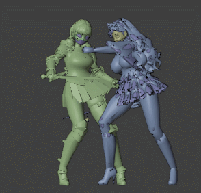 1. 감사합니다. 치마는 아직 작업 전이예요. 애니메이션을 작업할 때 몰아서 하는 것이 더 쉽기 때문에 이렇게 합니다. (머리카락도 가슴을 뚫고 나오고 있잖아요?)