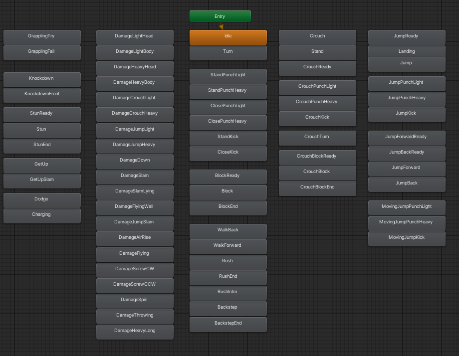 벨의 마지막스킬은 좀 복잡했다. 기본 컨셉은 KOF-쿄의 돌진기. 돌진해서 맞으면 추가타를 넣을 수 있는 기술인데, 돌진을 위해선 적에게 충돌하거나 위치가 바뀌는 타이밍을 얻어와 적용해주어야 했다. 이 과정에서 이틀간(출근을 하니 작업시간이 적어졌기 때문에!) 삽질을 했다.
