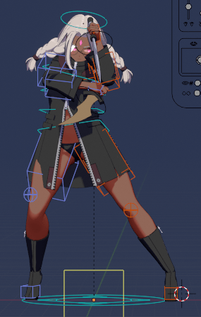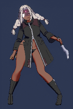 일어서기. GIF애니로 만드니 프레임이 짤려서 잘 보이지는 않지만, 90년대 홍콩 액션 영화에서 많이 보이던 튕겨오르며 일어서기이다. 시간이 제법 오래 걸렸는데, 사실 일어나기 모션은 그리 중요한 모션은 아니니 그냥 대충 만들어도 게임하는데 지장은 없다. 하지만 보다 날렵한 느낌을 주고 싶었고, 시간을 좀 더 투자했고, 보다 만족스러운 결과를 얻었다.