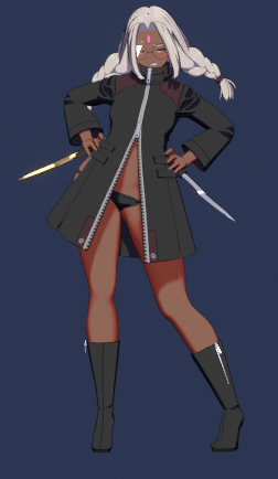3. 다시봐도 은발에 검은 피부, 갓경에 양갈래. 배꼽 아래부터 시원하게 깐 상의와 하의의 갭이 멋있소.