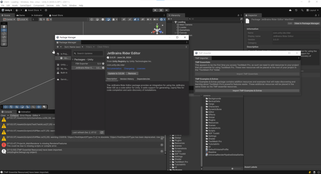 벌써 12월이다. 최근 들어 유니티가 자주 멈춰서 울며 겨자먹기로 유니티 6로 업데이트했다. 회사측 말로는 가장 완벽한 유니티라는데… 어디 한 번 보자.