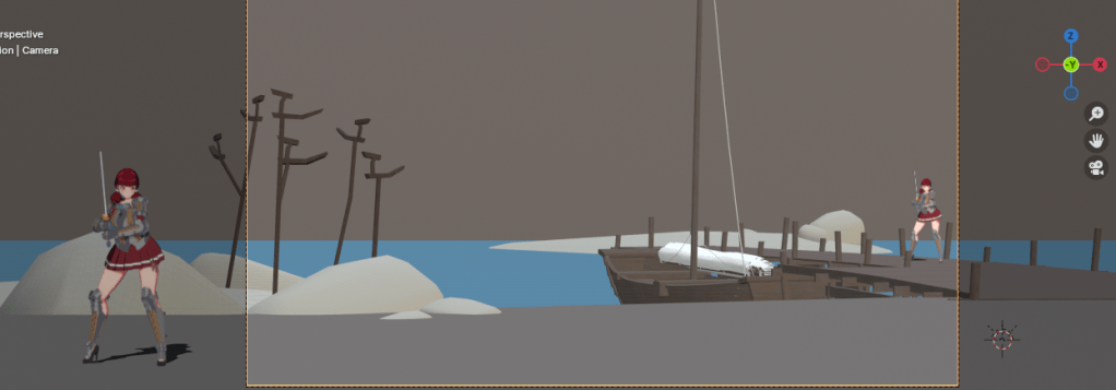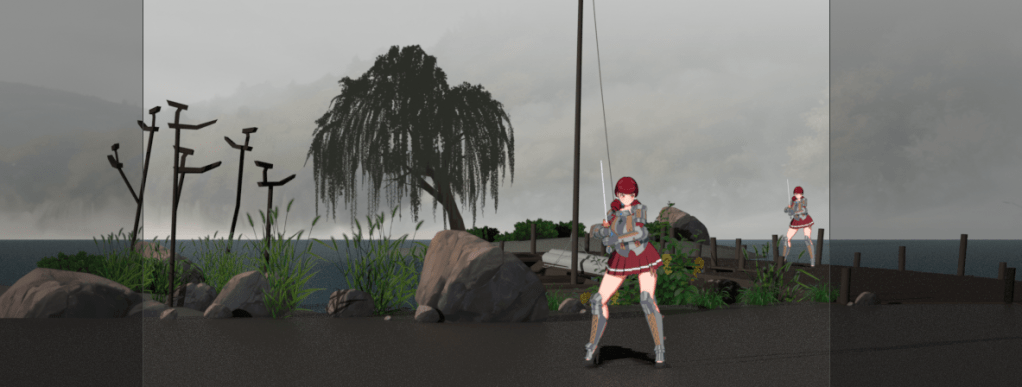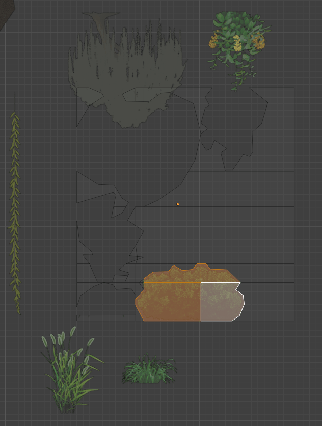 바위를 어떻게 표현할까 꽤 많은 고민을 했다. 2D? 3D? 나루터는 안개가 자욱한 형태로 구상하고 있기 때문에, 조명이 강하지는 않을 것이다. 그렇다면 명암이 덜 표현되는 2D가 나을까? 아니면 스크롤에 따른 형태가 확실하게 보장되는 3D가 나을까? 이 선택은 머티리얼의 선택으로 이어지고 결국 텍스처를 어디에 귀속시키는가? 에 대한 문제로 이어진다. 만약 3D로 할 것이라면 텍스처를 베이킹할 때 프로젝션을 할 것인지, 본체를 직접 사용할 것인지, 또한 메쉬의 UV를 어디서 짜를지, 뒷면이 보이지 않으므로 바위마다 뒷면최적화를 해줄 것인지, 만약 그렇다면 메쉬의 모양이 적합하지 않으므로 리메쉬를 해줄 것인지…등등에 대한 문제로 이어진다. 2D라면 바닥에 드리워지는 그림자를 어떻게 처리할 것인지, 주변 사물과의 정확한 그림자 관계를 위해 프로젝션을 할 것인지, 그냥 그려 복붙을 할 것인지등에 대한 문제가 남는다.