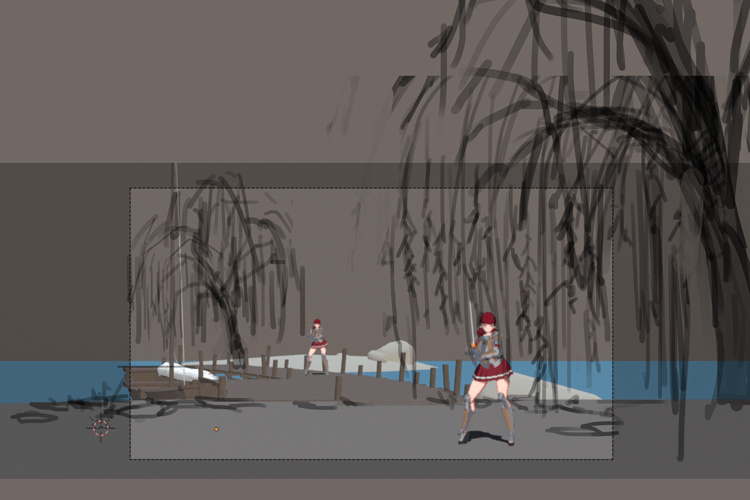 오른쪽은 버드나무로 채울 것이다. 이건 애니메이션을 해야 해서 꼼짝없이 그려야 한다.
