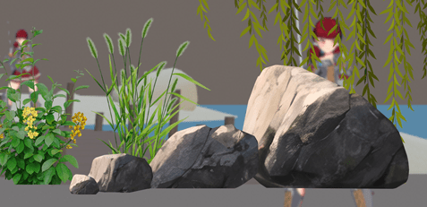 Plant는 제작이 끝났다. 바위는 Cutout에 해당된다. 즉, 그려서 표현할 것이다. 나루터 맵은 이 Cutout에 들어갈 내용이 바위밖에 없어서 다소 애매한 면이 있지만, 어쨌거나 다른 맵에서 범용적으로 사용할 수 있는 규칙을 정립하는 것이 중요하다. 나무는 향후 SkinnedMesh를 사용할 것이므로 인스턴싱의 도움을 받지 못해 사실 Plant를 사용하든 Cutout을 사용하든 상관이 없다. 엄밀히 말하면 계산이 적은 Cutout이 좋다. 하지만 그래봐야 Unlit을 사용하는 시점에서 이미 아껴봐야 잔돈이다. 이럴 경우엔 최적화를 일부 포기하고 작업의 편의를 높이는 것이 좋다.
