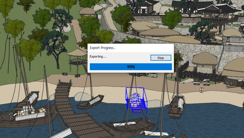 어쨌거나 이건 Sketchup파일이니, 스케치업도 깔아야 한다.이를 FBX로 바꿔서 … 아휴.. 업계표준이 빨리 블렌더로 바뀌면 좋겠다.
