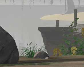 캐릭터의 색감을 조절하고, 날아다니는 버드나무 씨앗을 추가하고, 최종 조정을 통해 나루터 배경 완료. 벨이 나왔는데 노딱 안받았어! 오!