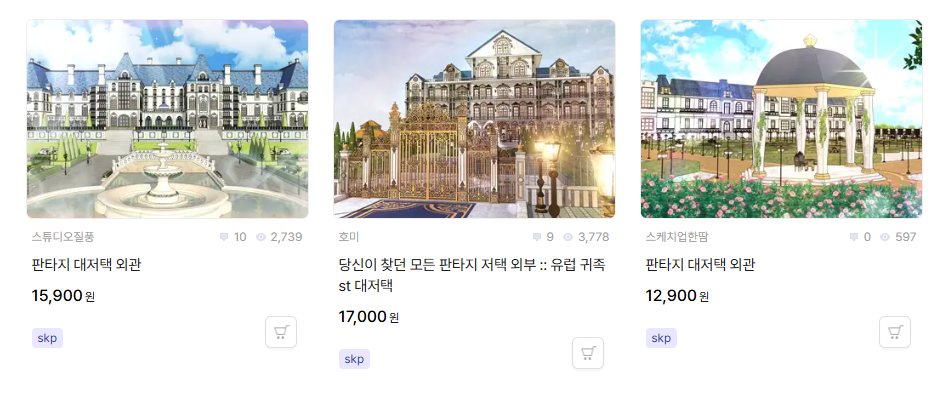 프리오리의 배경이다. 로판 열풍 때문에 대저택은 어셋이 많다. 인테리어가 필요한 것은 아니므로, 외관만 있는 걸로 찾아보자.