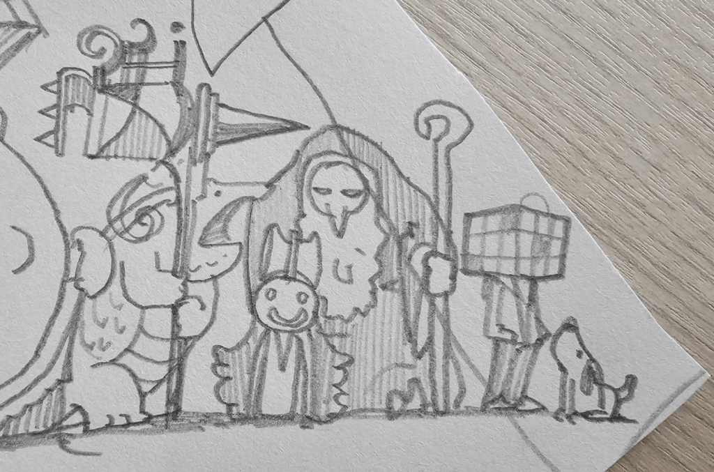 아이와 함께 시간을 보내며 애가 짤라놓은 종이조각에 가끔 맥락없는 그림을 그린다. 연필선은 아무리 보아도 질리지가 않는다.