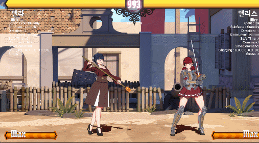 공중장풍은 손볼 게 조금 있긴 했지만 크게 어렵지 않게 구현할 수 있었다. 그런데 공중스킬이 있는 애들은 캔슬 때문에 여러가지 이지선다가 된다. 예상치도 못했던 강점이 생겼다.
