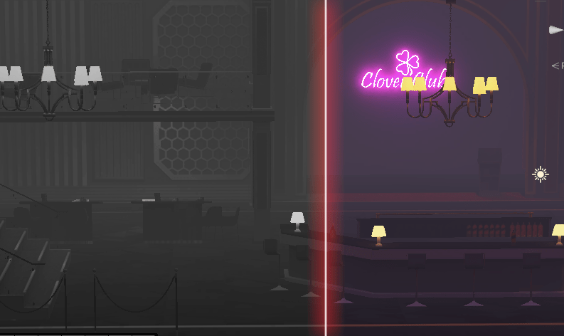 돔형의 영역은 또한 Transparent머티리얼과도 충돌을 일으킨다. 그렇다면 이걸 또 Transparent로 처리해야 하는데, 이렇게 되면 일이 너무 커진다. 차라리 큐제어를 제외하고 배경을 흑백처리 해보는 게 어떨까.