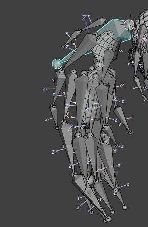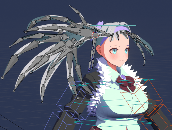 본을 심자. 다이나믹 본을 사용할 것이므로 크게 중요한 것은 아니나, 본은 항상 Z축이 바깥을 향해주도록 하는 편이다. 커스텀 본이 공통된 규칙을 가지고 있다면 이를 수동으로 움직일 때 항상 x축을 중심으로 움직이면 모든 본이 펼쳐지는 효과를 얻을 수 있으므로.